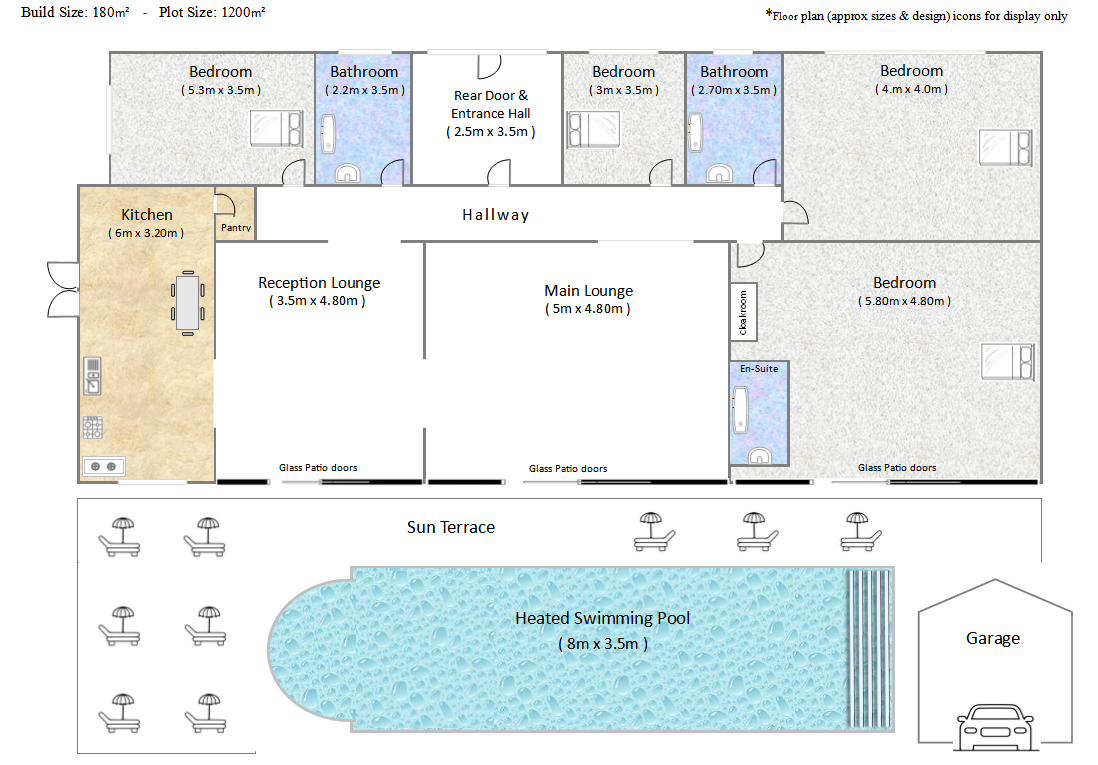 There is a fully fitted kitchen and dinning table, two lounges, outside terrace and sunbathing area, heated swimming pool plus garage